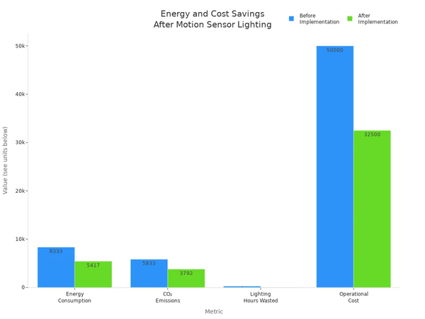 Уштеда енергије је веома важна за фабрике. Осветљење водоотпорног сензора покрета се укључује само када је неко тамо. Ово штеди много енергије. Стара светла остају упаљена све време и троше енергију. Паметна светла користе сензоре да се укључе само када је то потребно. Ово може смањити потрошњу енергије за 30% до 50%. Ово је корисно на великим местима као што су складишта.